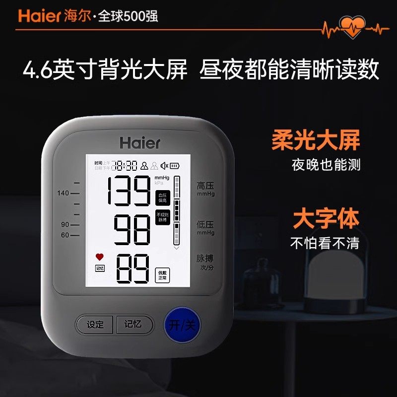 海尔医用电子血压计家用测量仪老人高精准量测血压的仪器臂式器表